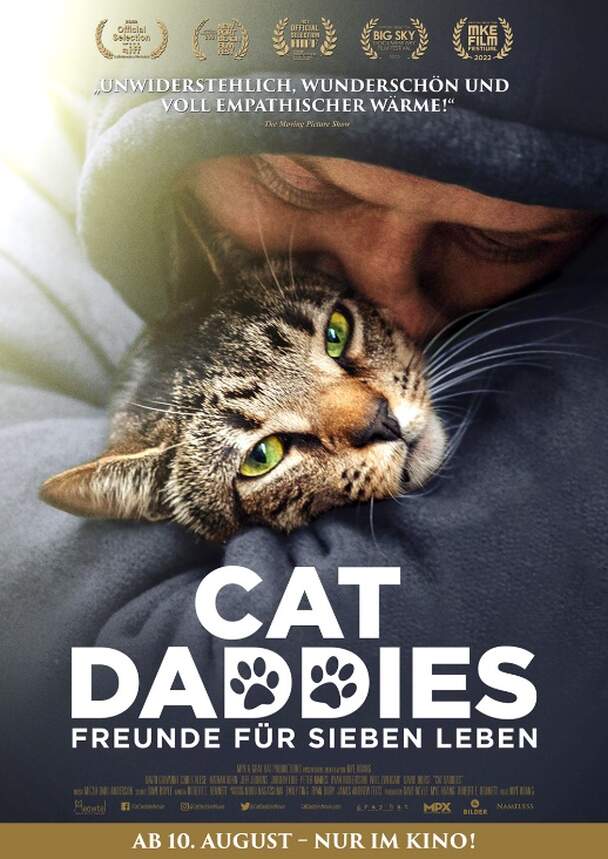 David Giovanni lebt auf den Straßen von New York und ist fest entschlossen, mit seiner geliebten Katze Lucky zusammenzubleiben. Doch als er endlich einen Platz in einer Übergangseinrichtung erhält, die auch Katzen aufnimmt, stellt eine verheerende medizinische Diagnose seine gemeinsame Zukunft mit Lucky in Frage. Mit Hilfe seines Freundes Chris, einem Polizisten, der ebenfalls ein großer Katzenfan ist, stellt sich David der Herausforderung. Davids bewegende Reise ist nur eine von neun Geschichten über „Katzen-Papas", deren Leben dank ihrer kleinen pelzigen Freunde eine positive Wendung nahm: Die des Schauspielers Nathan zum Beispiel, der zum Instagram-Influencer für Katzenfans wurde. Oder die Geschichte von Peter, dessen „winkende Katze“ Keys ein Internet-Phänomen ist, des Truckers David, der mit seiner Katze Tora im Rucksack die USA bereist, des Stuntmans Ryan, der dank seiner Katze Toodles die Liebe seines Lebens findet, des Software-Entwicklers Jeff, der mit seiner Katze Zulu die Natur wiederentdeckt, der des Feuerwehrmanns Jordan und seines Teams, deren Katze Flame das gesamte Revier bei Laune hält oder des Werbemanagers Will, der streunende Katzen wie Teddy liebevoll versorgt und dadurch einen neuen Sinn für sein Leben entdeckt. All diese Männer könnten unterschiedlicher nicht sein, aber was sie gemeinsam haben, ist die bedingungslose Liebe zu ihren flauschigen Freunden. CAT DADDIES – FREUNDE FÜR SIEBEN LEBEN erzählt – mal emotional, mal mit augenzwinkerndem Humor – von der herzerwärmenden Bindung zwischen Männern und ihren Katzen. Dabei bietet der Film ganz nebenbei auch erfrischende Einblicke in die moderne Männlichkeit, die es Männern erlaubt, zu ihrer Tierliebe zu stehen und die Öffentlichkeit daran teilhaben zu lassen.