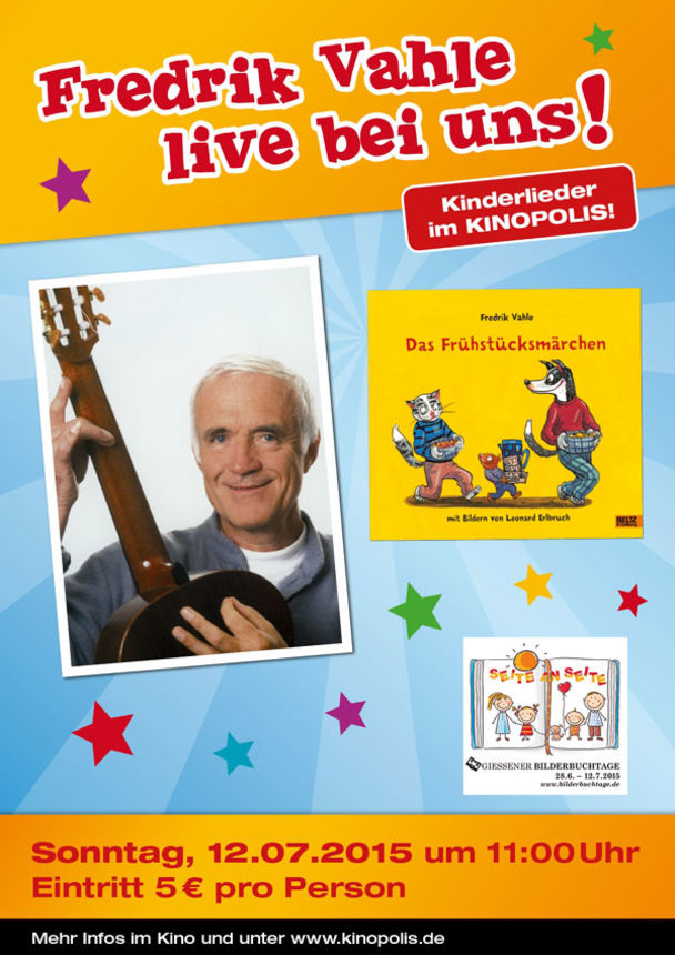 Iiih, Leberwurst! Uargs, Spinat! Wem schmeckt schon alles? Eltern wissen ein Lied davon zu singen. Fredrik Vahle auch. Denn zum Abschluss der Gießener Bilderbuchtage 2015 stellt der populäre Autor und Liedermacher sein neuestes Bilderbuch "Frühstücksmärchen" vor, zu dem Leonard Erlenbruch die wundervoll humorigen Illustrationen beigesteuert hat und das brandneu im Juli im Beltz Verlag erscheinen wird. Fredrik Vahle treibt die übliche Nörgelei am Frühstückstisch gekonnt auf die Spitze ? bis deutlich wird, dass es eigentlich ganz egal ist, wer was isst. Hauptsache, man frühstückt zusammen mit denen, die man am liebsten mag!
