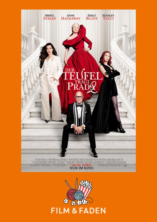 Jeden Monat zeigen wir einen ausgewählten Film, bei dem du ganz gemütlich stricken, häkeln oder sticken kannst. Das Licht im Saal bleibt dafür leicht gedimmt – gerade hell genug, um den Faden nicht zu verlieren, und dunkel genug für echtes Kinofeeling.